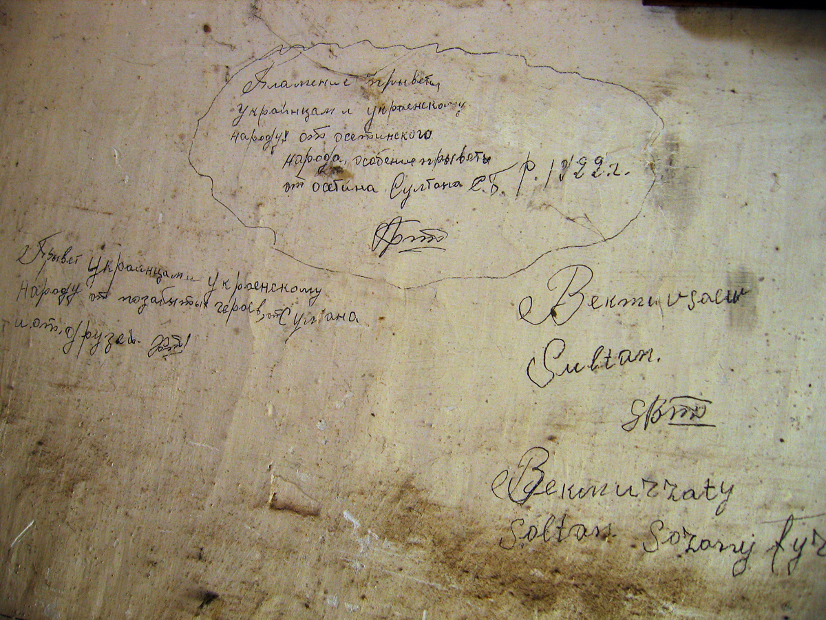 Parmi les graffitis les plus singuliers, on relève le dessin d’une ferme reconstituée, dont tous les éléments sont légendés. La scène semble se passer en Alsace (on peut apercevoir une cigogne sur le toit d’une grange), dessinée par un prisonnier chez lequel on devine, à l’évocation de ses racines paysannes et de sa région natale, une certaine nostalgie. Des verres et une bouteille de Monbazillac, cru 1929… Le millésime interroge : s’agit-il de la date de naissance d’un jeune prisonnier âgé de 15 ans (il y en a eu), ou bien le souvenir marquant de jours heureux ?… La grille d’un jeu de bataille navale, parce que les journées sont longues… il faut bien tuer le temps ! Une scène de sodomie. Quelques portraits d’officiers russes, de face ou de profil, se retrouvent ça et là, entourés de messages sibyllins. On assiste à une exécution… Plusieurs dessins de chars sont probablement l’œuvre de civils conduits ici le 21 juin 1944, après l’incendie de leur village par les Allemands de la 11e Panzer Division.